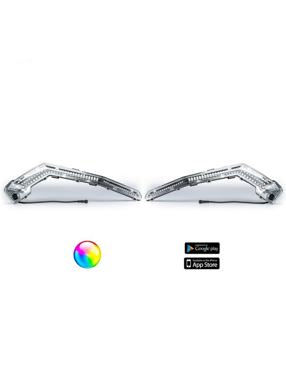 The 5150 Whips Can-Am X3 Eyebrows are the perfect addition to Can-Am X3 with the Bluetooth functionality allows for color control through your smartphone and has a multitude of color options and various functions. The 5150 Whips Can-Am X3 Eyebrows are wrapped in 360 degrees of waterproof lighting coverage making them some of the brightest and most durable LED Eyebrows on the market.
