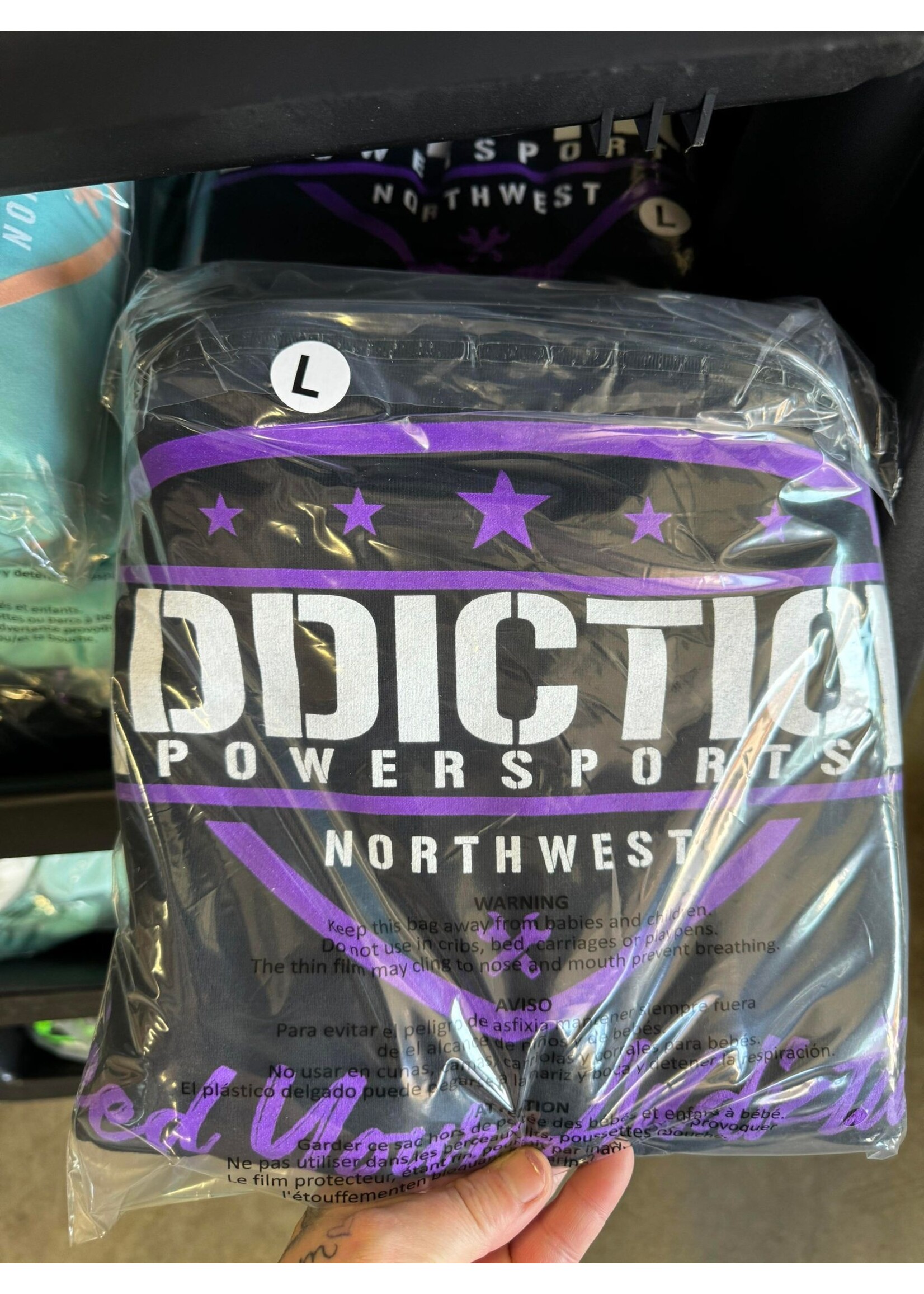 Addiction Powersports NW Pull Over Hoodie Black With Purple Logo