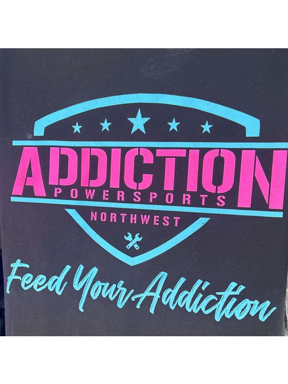Addiction Powersports NW Pull Over Hoodie Black With Hot Pink & Blue Logo