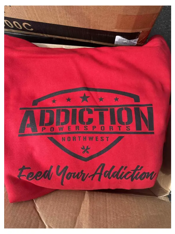 Addiction Powersports NW Pull Over Hoodie Red With Black Logo