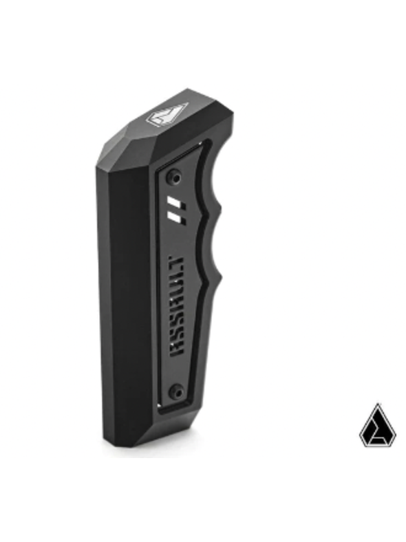The Assault Industries Hellfire V2 shift knob is machined from 6061 T6 billet aluminum and hard anodized black. A laser cut, Assault branded accent plate sits atop color coded inlays.