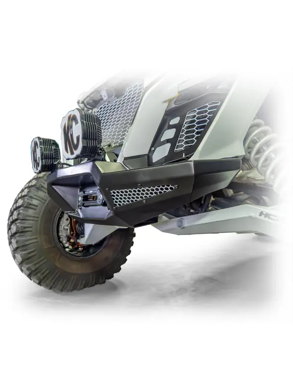 The DRT Motorsports Can-Am Maverick R Front HD Winch Bumper adds aggressive styling, protection, and provides a perfect location to mount a winch.