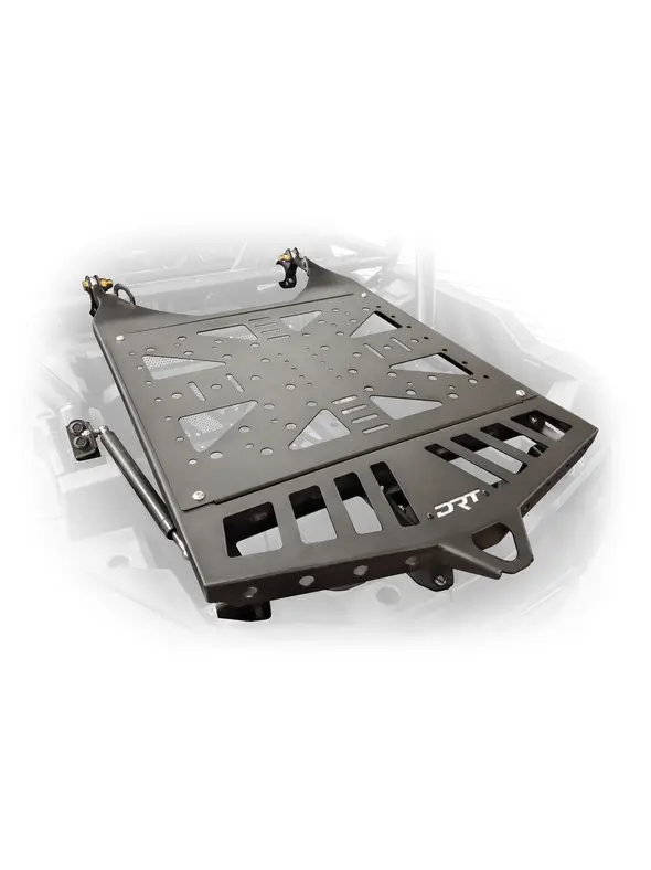 The RZRXPTC1 features a boxed design with tons of tie-down point options, a heavy-duty latch, and lift assist shocks. When used as a tire carrier, the DRT RZR XP Adventure Rack will hold up to a 35î tire securely to keep you on the trails and running hard.