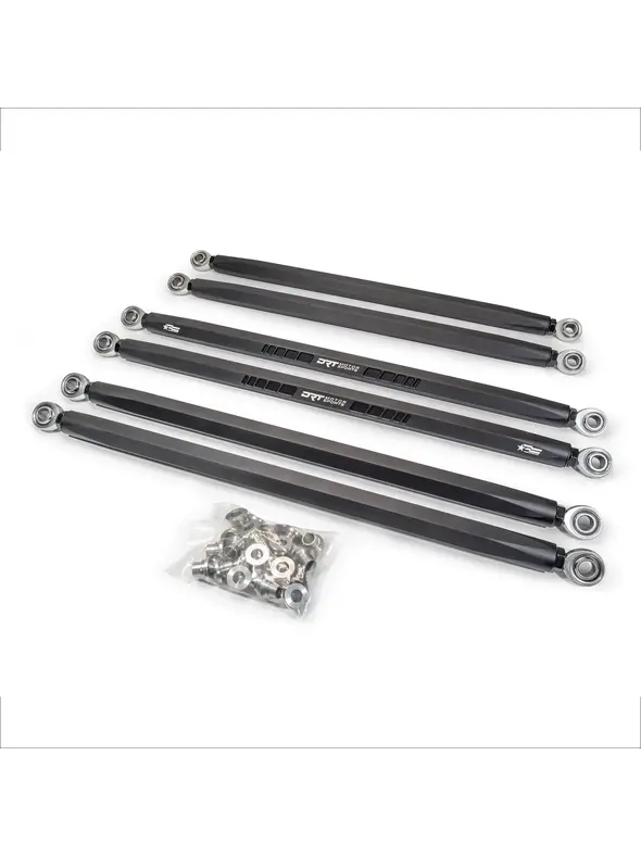 The DRT Motorsports Billet Aluminum Hex Bar Radius Rod Kit is designed to increase the strength and adjustability of your radius rods in a stylish package.