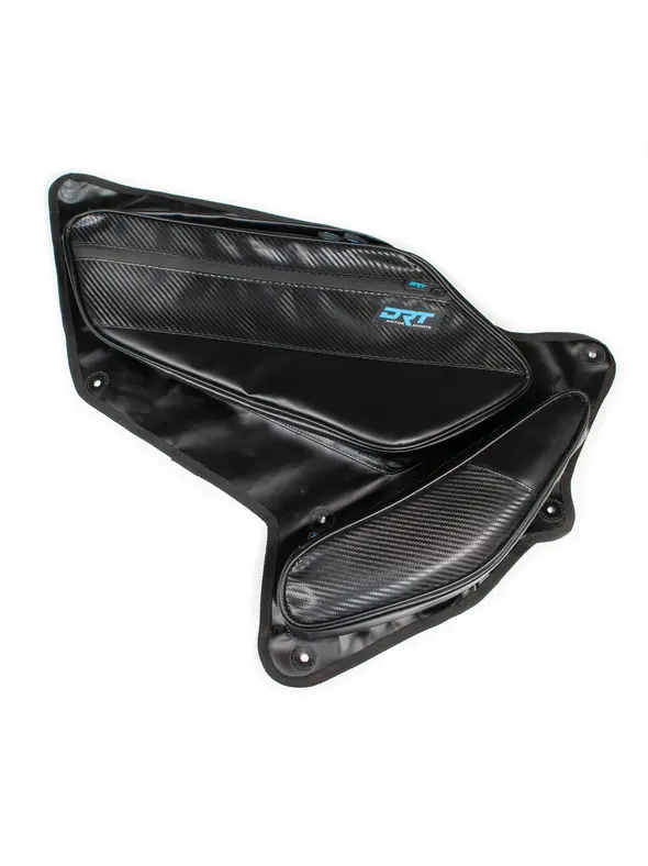 This location is convenient and accessible while you are secured into the vehicle. These bag sets feature 2 convenient pouches to keep essential items handy. A foam knee pad is included for the lower portion of the door bag to protect your knees and add comfort. Made of high-quality vinyl with carbon fiber accent material and water-resistant zippers to keep items dry. Installation is a simple bolt-in application and designed to sit securely between the door skin and frame. Remove the OEM door skin and reinstall with the door bag in between the frame and door skin using OEM hardware.