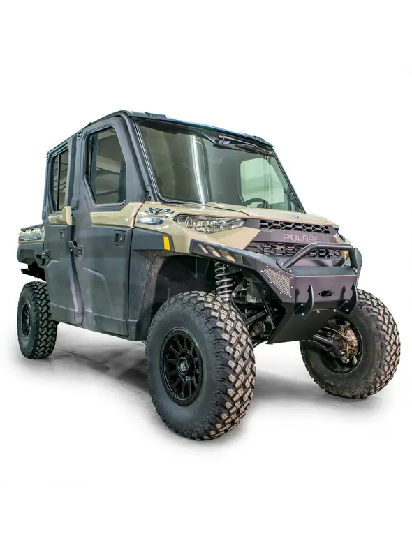 The DRT Motorsports Polaris Ranger XP Front Winch Bumper fits the 2019+ Polaris Ranger XP 1000, all models. This DRT front winch bumper replaces the stock OE bumper with a high-strength steel winch bumper and skid plate. The bumper includes removable mesh inserts that can be easily color-matched to your vehicle. The RNGXPFB1 adds much more strength, protection, and rigidity to the front end of your Polaris Ranger.