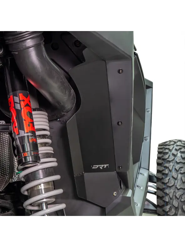 The DRT Motorsports Polaris Pro XP / Turbo R Aluminum Rear Inner Fender Guards are designed to deflect and divert mud and grime from entering your vehicle.